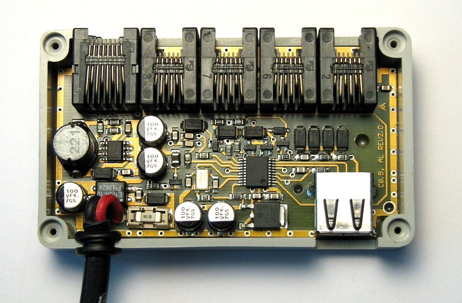 V centrální jednotce jsou všechny piny konektoru čidel (kromě pinu 5) spojeny paralelně. Piny 5 jsou spojeny přes schotkyho diody SS16.